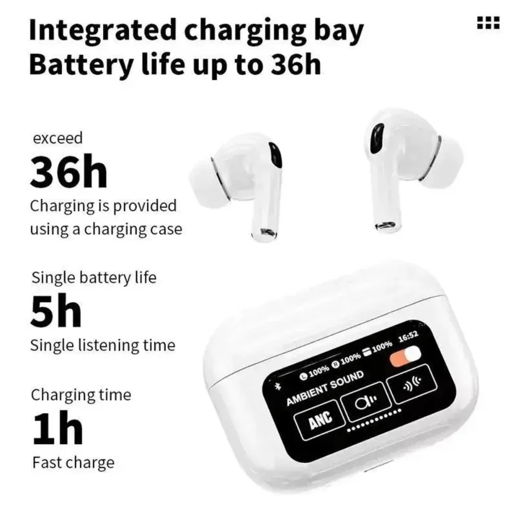 Experience true innovation with these full-color smart touch screen Bluetooth earbuds. Featuring advanced noise cancellation, a vivid LCD touch interface, and up to 36 hours of playback, they combine high-performance audio and intuitive smart controls for modern users in Pakistan.